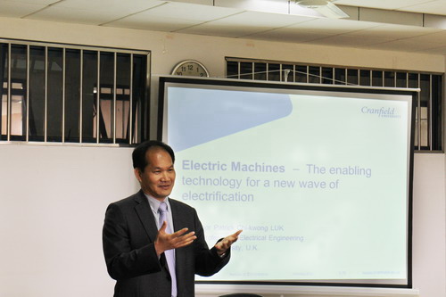 报告中,Patrick Luk教授首先介绍了电机和电力电子与电力传动的基础理论和应用,着重阐述了可再生能源系统以及电动汽车与飞行器中的多电气结构研究中的关键问题,如电动汽车充电与智能电网的信息互动、基于3D模型下的有限元仿真分析电机磁场与相关设计问题;最后介绍了所在实验室目前在研的重点课题,以及相关领域研究的最新进展。