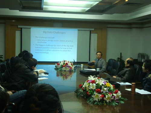 Yu-Chu Tian教授首先结合当前IT技术发展的前沿,通过具体的应用介绍了大数据的定义、特点和研究紧迫性。深入的分析了大数据处理研究所面临的关键技术问题和挑战,尤其是现代企业对大数据技术的认知度问题。结合生物信息处理当中的多输入多输出模型,分析介绍了云计算以及其所提供的不同层次的服务,并对大数据处理与云计算的关系进行了阐述。最后,对其目前所开展实施的澳大利亚最为先进的大数据实验室组建以及相关研究成果进行了介绍,展示了大数据处理和云计算在数据处理、存储、以及服务等方面所具备的技术先进性。报告会极大地扩展了与会师生在大数据以及云计算方面的视野,会后的讨论及提问十分热烈,Yu-Chu Tian教授也热情解答了老师和同学们的提问。主讲嘉宾简介:Yu-Chu Tian教授,计算机科学家,系统与网络领域澳大利亚研究理事会国际专家,澳大利亚昆士兰科技大学计算机网络与通讯系主任。1993年于浙江大学获得工业自动化博士学位,2009年获得悉尼大学计算机和软件工程博士学位,1987年加入海军工程开云体育下载 任讲师,1994年-1998年任浙江大学副教授,1996年-1998年香港科技大学访问学者,1998年加入澳大利亚科廷科技大学任Research Fellow,2000年入选4位西澳大利亚战略研究员之一,自2002年以来,入职澳大利亚昆士兰科技大学,历任讲师、高级讲师、副教授,目前担任教授、系主任,2007年成为马里兰大学计算机科学系客座教授。Yu-Chu Tian教授共发表了148篇论文,h指数达到20,获专利1项,研究领域包括:复杂系统工程、智能系统、实时计算和嵌入式系统、计算机网络和无线通讯、大数据处理、分布式云计算以及控制理论和工程。Yu-Chu Tian教授组建了昆士兰科技大学计算机网络与通讯系,领导建立了澳大利亚第一个大数据实验室,承担了数个大型ARC和CRCs研究计划。Yu-Chu Tian教授还担任了Information Sciences(Elsevier)和Asia-Pacific Journal of Chemical Engineering (Wiley)副主编,以及ACM’s Computing审稿专家。
