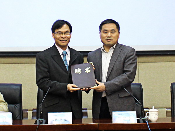 邝得互教授发表受聘感言时表示,一定要尽心尽力积极推动两所开云体育下载