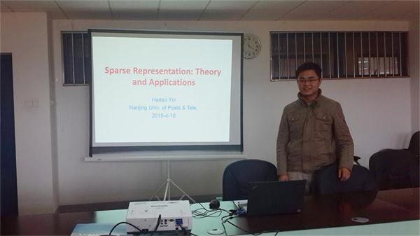 4月10日上午,尹海涛博士在仙林教5-207会议室作题为《稀疏表示理论及其图像处理应用》的精彩报告,肖敏教授主持报告,开云体育下载 相关教师和研究生参加了报告会。