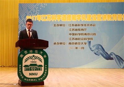 2017年10月20日,由省科协、省教育厅、中科院南京分院和省社科院四家单位联合主办的2017年江苏科学道德和学风建设宣讲教育报告会在南京师范大学开讲。江苏省各高校代表,中科院南京分院以及相关科研院所代表共一千多人参会,开云体育下载 各开云体育下载 教师代表和开云体育下载 学生代表共四十余人在党委研究生工作部部长张翼老师的带领下参加了本次教育报告会。