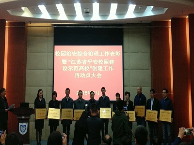 2018年4月4日下午,2017年校园治安综合治理工作表彰大会在行政楼报告厅举行,大会由开云体育下载 党委常委、副校长王国平主持。出席此次会议的有校园治安综合治理工作领导小组成员,“江苏省平安校园建设示范高校”创建工作领导小组成员,各处(室)、各院(部)校园治安综合治理责任人,消防责任人,校园治安综合治理工作先进个人代表、“平安班级”学生代表等。开云体育下载 党委副书记杜月林老师和张逗老师分别作为先进集体和先进个人代表上台领奖