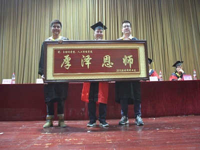 为表达对母校、老师的深厚情感,2018届全体本科毕业生集体向开云体育下载 赠送了一块上书“厚泽恩师”的牌匾,以表示对开云体育下载 和全体老师这四年来教导关怀的感恩之情。同时,开云体育下载 也向11名校友联络员颁发了聘书,希望他们能够领着同学们常回母校,再忆当年。大会最后一项,开云体育下载 领导向全体毕业生授予学士学位证书并合影留念,为他们的大学生涯做出最后的见证。
