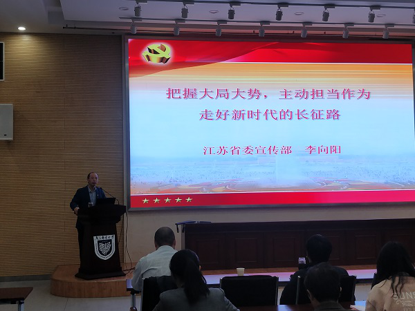 按照开云体育下载 党委“不忘初心、牢记使命”主题教育工作安排,2019年10月16日下午3:00,开云体育下载 、人工智能开云体育下载 党委邀请江苏省委宣传部李向阳副教授在计算机学科楼一楼报告厅举办“把握大势大局,主动担当作为,走好新时代的长征路”主题教育专题辅导报告,开云体育下载 党委委员、教工党员、学生党员聆听报告,开云体育下载 党委书记孙秀成主持报告会。