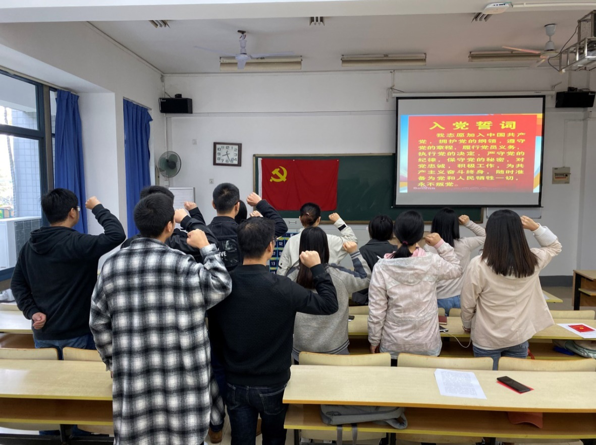 党支部书记徐梦桢带领党员重温入党誓词,全体党员佩戴党员徽章,郑重举起右手,面对党旗,庄严宣誓。党员们从几年前的入党申请书中重忆当年的坚定信念和入党初心,汲取澎湃的进取激情和为党奋斗的精神力量,在庄严的氛围中再一次接受党组织的检验。
