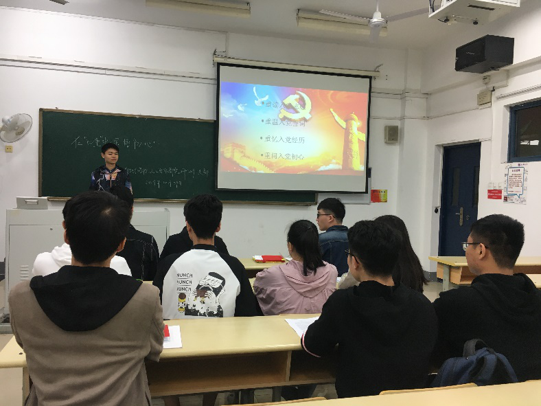 2019年10月29日晚6点半,开云体育下载 、人工智能开云体育下载 研2019级一支部在教4-103教室开展了在“四重”中深悟初心的主题党日活动。本次活动由支部书记刘良辰主持,支部书记向大家介绍了“四重”的具体内涵,即“重读入党志愿,重温入党誓词,重忆入党经历,重问入党初心”。