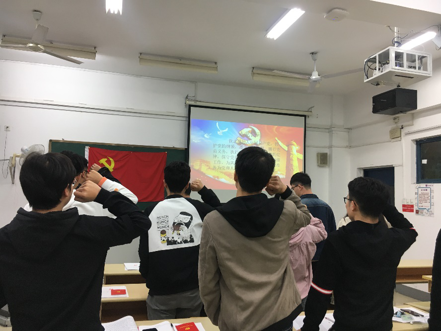 首先,每位党员对自己的入党志愿进行了回顾,宣读了核心内容,每个人都对自己的成长经历有了一个新的感悟。大家回忆了自己的入党经历,从只是怀着对成为党员的光荣而向往的懵懂少年到拥有一定政治思想的新时代研究生党员过程中的趣事,很多事情现在想起来仍然印象深刻。随后,结合共产党员的初心和使命,叩问自己的入党初心,把入党作为一种思想的进化、觉悟的提高、特殊的奉献,在重问初心的过程中进行认真思考,自我检查,发现自身的不足并进行弥补。最后,大家面对党旗,以饱满的精神状态、洪亮的声音庄严宣誓,表明了为党的事业奋斗终身的决心。