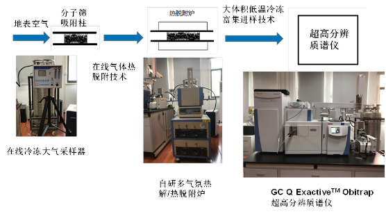 关键技术: 团队自主研发了基于气体示踪技术的高精度微泄漏监测技术,具体包括: (1) 痕量气体示踪剂的高选择性吸附技术,该技术采用低温冷冻在线吸附技术。项目组专门研制了在线冷冻大气采样器。 (2) 超低检出限的气体示踪剂检测技术—大体积低温冷冻富集直接进样技术。该技术依托目前世界最低检测限的超高分辨质谱仪和自研多气氛热解/热脱附,实现气体示踪剂在痕量浓度条件下精准定量分析。