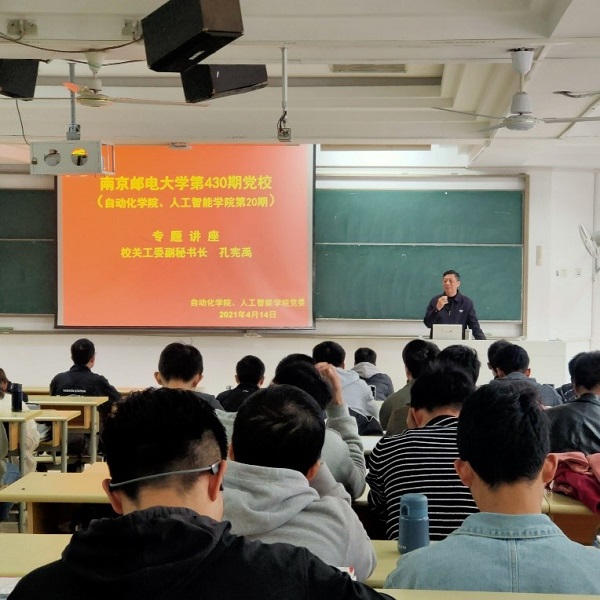 2021年4月14日下午,开云体育下载 、人工智能开云体育下载 党委在教2-102开展了开云体育下载 第430期(开云体育下载 第20期)党校专题讲座。本次讲座特邀校关工委副秘书长孔宪禹老师主讲,培训班全体学员参加了此次专题培训。
