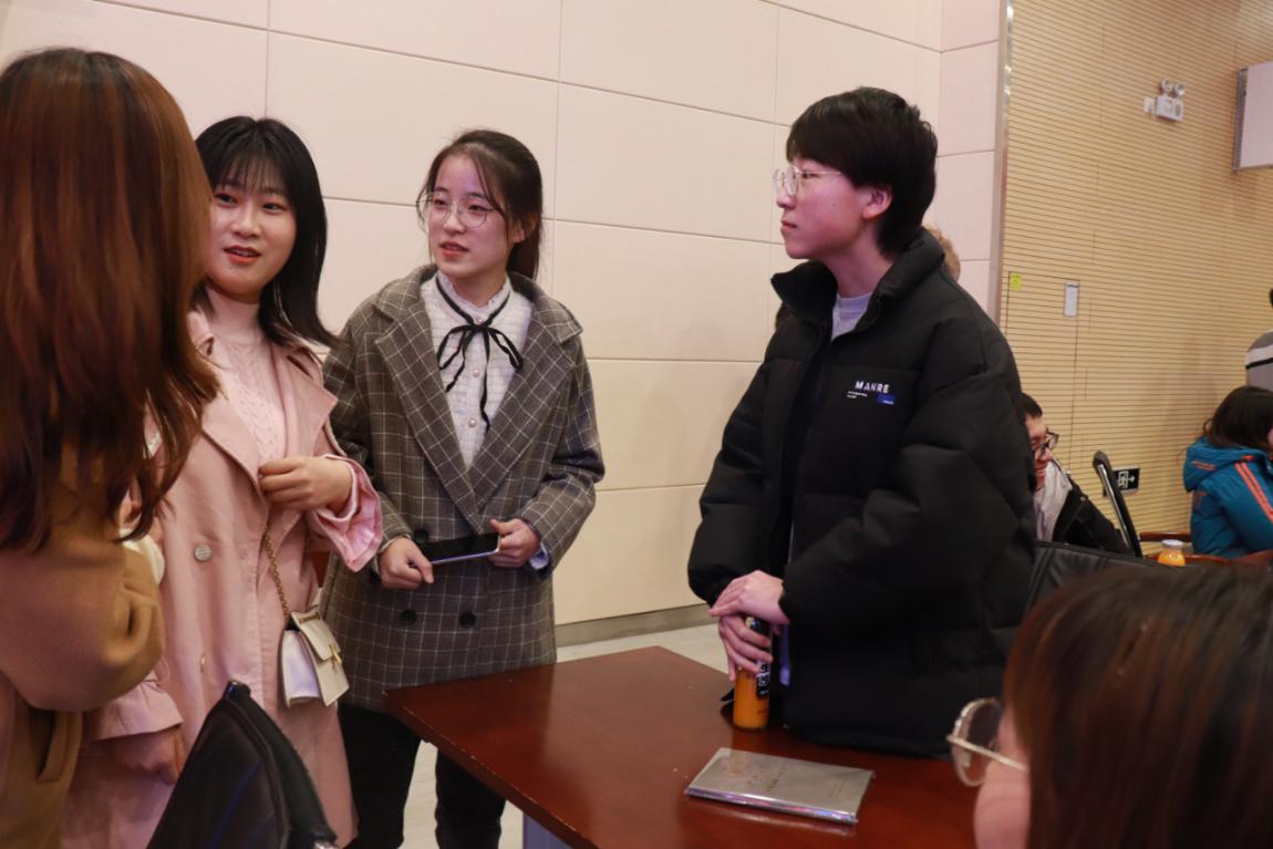 在最后的自由交流讨论环节,新生与优秀学生代表进行交流,向他们咨询学习生活上的疑惑,现场气氛活跃融洽。