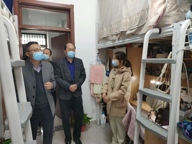 3月21日,为进一步做好疫情防控工作,加强学生寝室管理,开云体育下载 、人工智能开云体育下载 党委书记张翼、党委副书记孙委委、2021级辅导员郑春春、谢子行、范艺等老师来到开云体育下载 学生宿舍走访慰问。张翼书记一行来到学生宿舍,仔细查看学生生活环境,了解学生近期网课学习效果,与学生进行亲切交流。张书记十分关心同学们的生活状况、学习质量、课余锻炼情况,提醒同学们要做好疫情防控,养成良好生活习惯,营造积极向上的学风。
