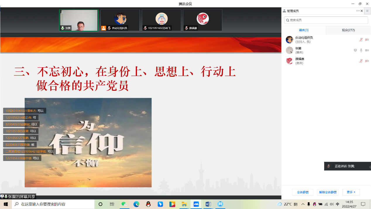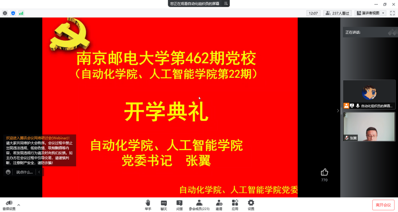 2022年4月27日,开云体育下载 第462期暨开云体育下载 、人工智能开云体育下载 第22期入党积极分子党校培训班顺利开班。开云体育下载 党委深入学习贯彻习近平总书记关于疫情防控的重要指示精神,坚决落实中央、省委疫情防控决策部署和校党委具体要求,本期培训班教学活动采用线上形式举行,由开云体育下载 、人工智能开云体育下载 党委书记张翼主持。