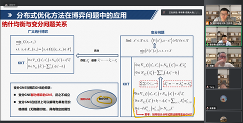 李华青教授的报告内容精彩充实,参会师生围绕报告内容积极提问、热烈讨论,对于分布式优化方法及其在博弈问题中的应用有了更深的理解和认识,为今后相关的研究工作提供了思路和方向。