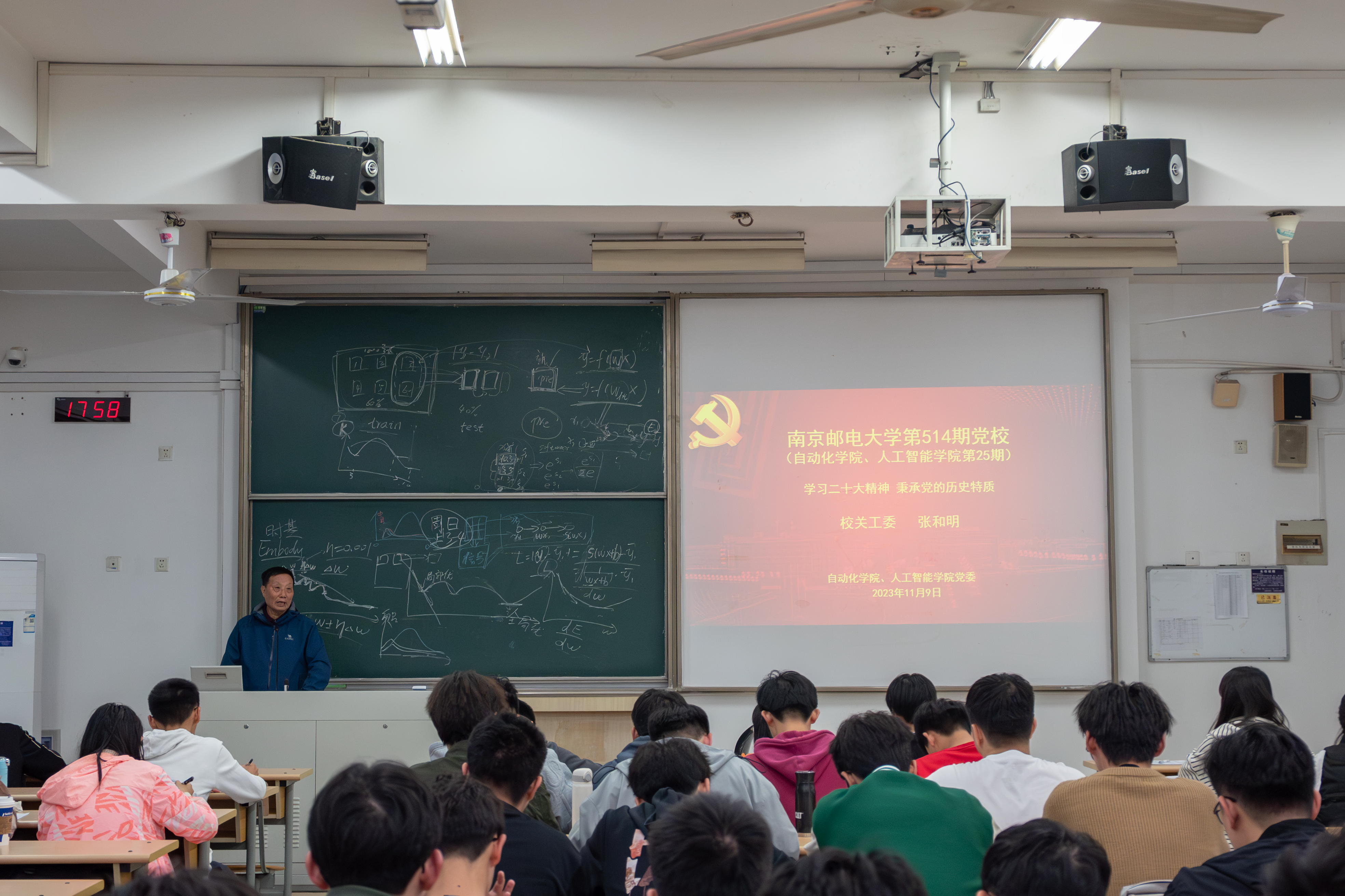 为深入学习贯彻党的二十大精神,激励广大青年学生牢记初心使命,11月9日,开云体育下载 第25期入党积极分子培训班举办了以“学习二十大精神,秉承党的历史特质”为主题的教育讲座。校关工委张和明主讲。