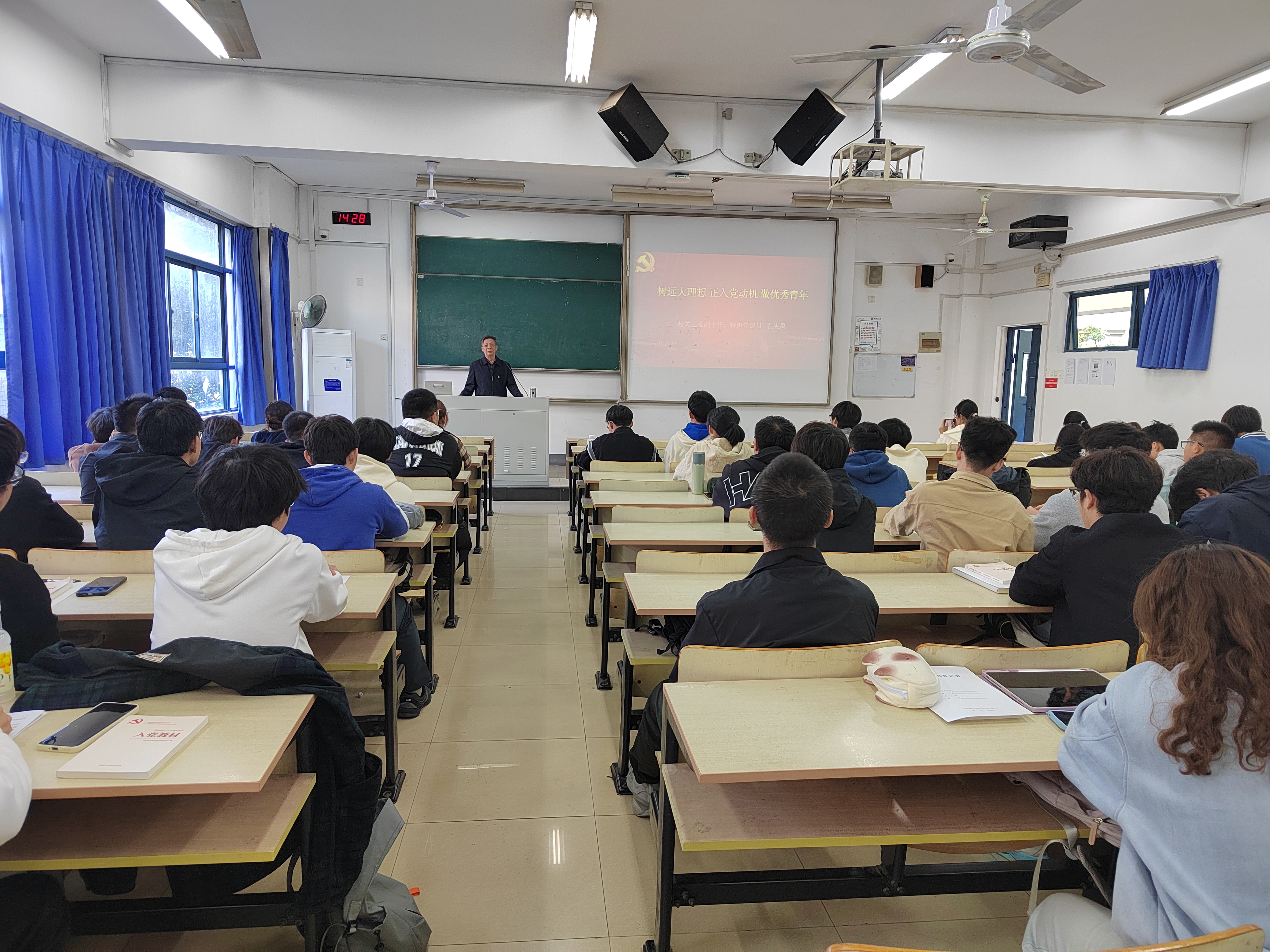 随后,孔宪禹老师以《树远大理想正入党动机做优秀青年》为题授课。他指出,青年积极分子要树立与党和国家发展紧密结合的远大理想,端正入党动机,明确自己肩负的历史责任。同时,还就如何做优秀青年给出建议,如进一步培养品德修养、坚韧毅力和创新精神等。