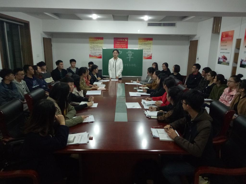 讨论主要围绕《中国共产党章程》、《习近平总书记的十九大报告》、《山东财经大学关于进一步做好党员发展工作的意见》展开。经过一段时间对党章的学习,同学们都对党章有了更深刻的理解,明确了党章是党的总章程,是每位党员的行为规范。在十九大闭幕之日,同学们集中讨论了习近平总书记的十九大报告,体会到了十九大报告中蕴含的期望精神。讨论会上,大家踊跃发言,积极交流,纷纷表示会认真学习党的理论政策,以党员标准要求自己,起到表率带头作用�