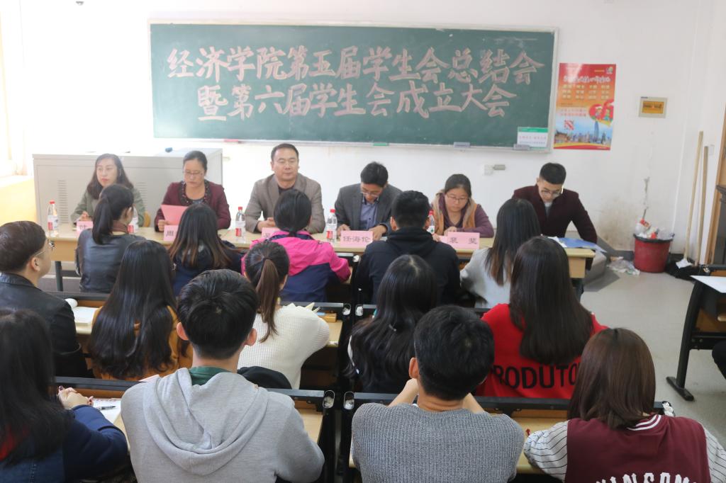 (通讯员:刘如� 杨玉琪)2017�10�24日�25日中�12:30,经济学院第五届学生会总结会暨第六届学生会成立大会分别在舜耕校�2309�圣井校�5306教室举行。院党委书记吴红文,副书记任海伦,院团委就业办主任裴斐,辅导员付雯、朱海林出席,第五届学生会主席团、部长和第六届学生会全体成员参加会议。本次会议由院团委书记�学工办主任周新秀主持�
