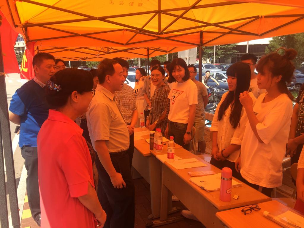 迎新现场,校领导和院领导均亲临现场,详细了解学院迎新工作具体进程和新生报道情况,对学院工作人员的细致工作给予认可和鼓励。报到具体流程包括资格审�、户口关系、住宿安排等环节,学院为每一个环节配备两名工作人员,保证报到工作的有序完成。每个新生基本两分钟左右就可以完成报到工作,大大减少了同学的等待时间。学院同时设置多名机动人员以应对突发情况,保证经济学�2017级硕士研究生迅速高效的完�到工作�