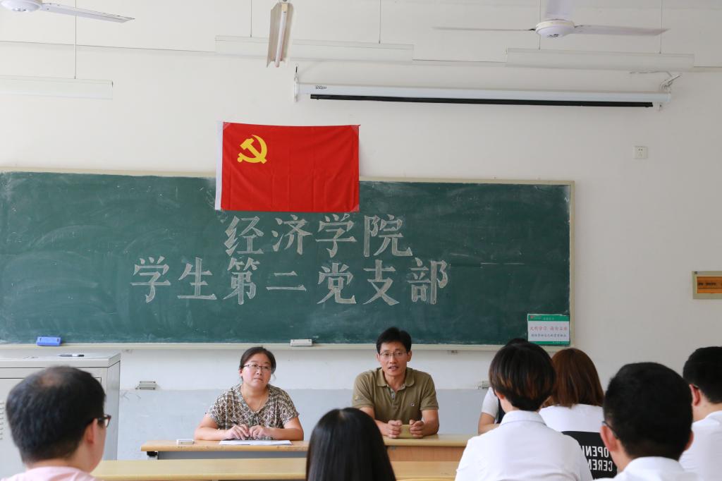 �通讯员:李冰��为庆祝中国共产党成立96周年,进一步激励党员坚定爱党、信党、跟党走的理想信念,经济院以“两学一做”学习教育常态化、制度化为抓手,开展了入党宣誓和专题党课活动�