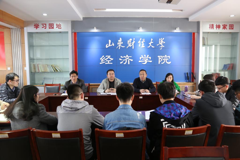 (通讯员:杨晶、刘如玉�2017�3�17日下午,经济学院于舜校�600会议室召开了两会精神学习座谈会。党委书记吴红文、副院长陈保启、辅导员付雯出席此次会议,研究生、本科学生代表参加座谈,会议由院党委副书记任海伦主持�