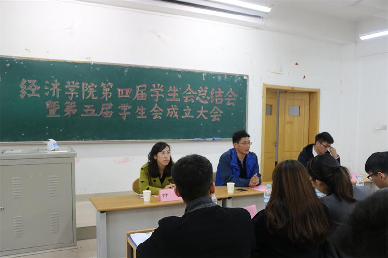 (通讯员:杨晶�10�19日�24日,经济学院第四届学生会总结会暨第五届学生会成立大会分别在舜耕校区天舜大�600会议室、圣井校�5307召开。经济学院党委书记吴红文、副书记任海伦、团委书记兼学工办主任周新秀、正�级辅导员付雯出席会议。第四届�生会主席、第五届学生会全体成员参加会议。会议由周新秀主持�