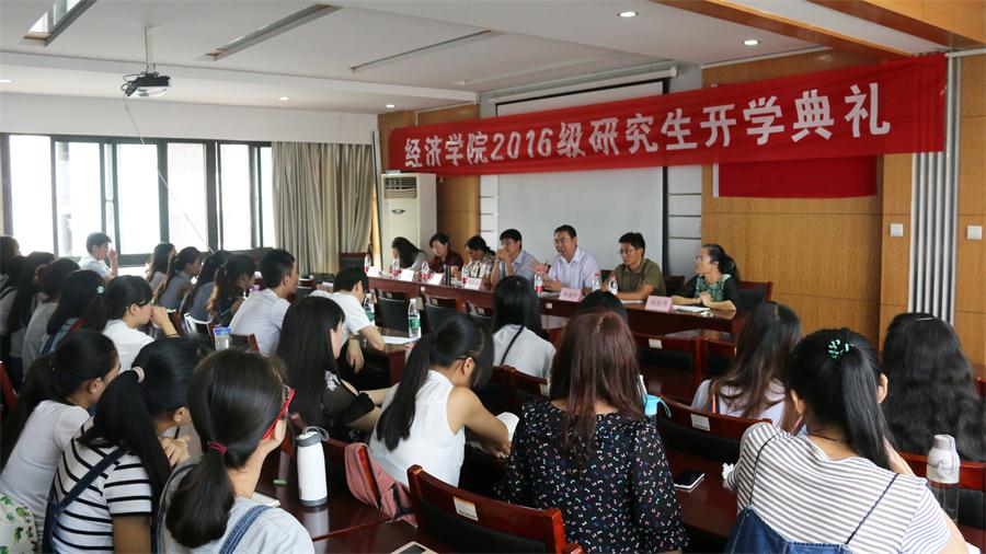2016�9�5日上�9时,经济学院2016级研究生开学典礼暨入学教育大会于舜耕校区天舜大�600室隆重举行。经济学院院长董长瑞、党委书记吴红文、副院长�传荣、副书记任海伦、仵颖涛、团委书记周新秀�究生及科研秘书张新春出席本次开学典礼�我院2016级全体研究生新生参加了本�大会。本次大会由任海伦主持�
