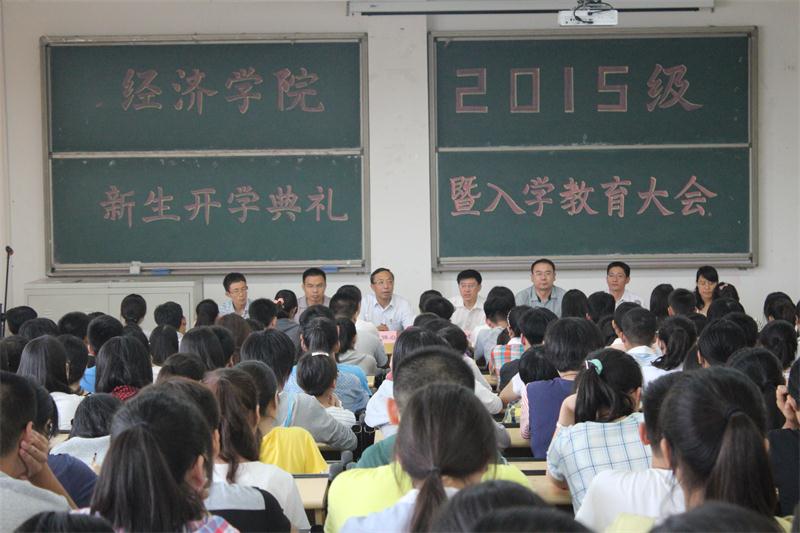 9�10日下�13�30,经济学院新生开学典礼暨入学教育大会于圣井校区明德楼B1-110教室隆重举行。学院领导院长董长瑞、党委书记吴红文、副院长陈保启、党委副书记任海伦出席会议。教师代表张英、齐永华、宋宪伟,辅导员裴斐、王琦以及我�2015全体新生参加会议。会议由任海伦主持�