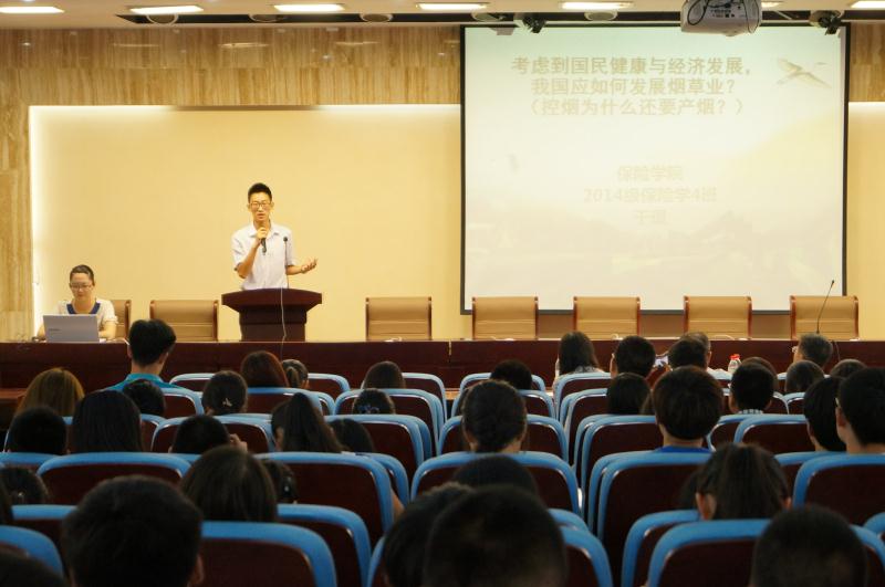本次知识竞赛历时半个月,分为初赛和决赛两部分。初赛采用闭卷笔试的形式,内容涉及西方经济学、政治经济学等重点学科,经过严格筛选共�9名同学进入决赛。决赛分经济学科学�风采展示、必答抢答、看视频论述三个环节。经济学科学术风采展示环节中,各参赛同学按照提前抽取的论题和顺序,以独特的经济学视角、条理清晰的经济学思维进行演讲。“从一带一路到亚投行,中国的战略构想是什么”深入剖析当下我国面临的产业升级、结构转型等严峻形势,揭示我国在扩对外商品输出、维护世界金融市场稳定等方面的重大战略构想;“对中国向非洲大规模投资的看法”引�标准普尔研究成果,展现中非友好经济往来带给两国的�双刃�影响;“怎样看待微信营销”贴近现实生活,引用生动简明的事例观分析微商这种新的营销方式的利弊和“信任经济”。第二环节为必答抢答环节,选手思维缜密、反应敏捷,显示出较高的理论水平和广阔的知识视野;看视频作答环节,选手们认真观�视频《有关波兰经济的故事�,围绕“近年波兰经济转轨”就三位评委的现场提问进行作答,高度的概括、严谨的逻辑赢�阵阵掌声。最终,经济学院郑庆彪同学�获一等奖,经济学院雷铭、郭恩秀同学获二等奖,保险学院于琨同学、经济学院王丽军同学、金融学院栾经亚同学获三等奖�