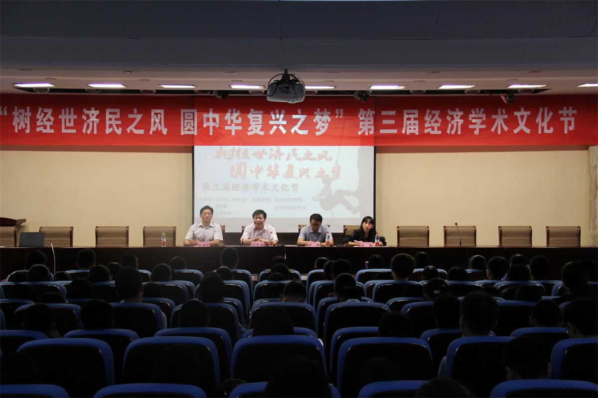 5�21日下�14:00,由校学生工作(部)处、校团委和经济学院共同主办的“树经世济民之风,圆中华复兴之梦”第三届经济学术文化节开幕式于圣井校区敏行楼B5-101多功能报顺利召开。校团委书记刘奇耀�学生处副处长于栋�经济学院党委副书�任海伦以及院团委辅导员付雯老师出席,经济学�13�14级学生加开幕式,开幕式由院党委副书记任海伦主持�