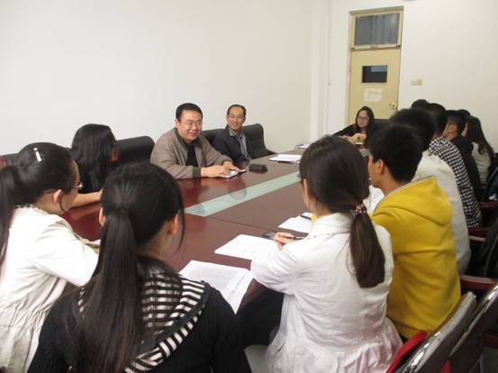 5�9日下午两点,经济学院在舜耕校区六号楼会议室召开学习习总书记五四讲话精神座谈会,党总支书记吴红文、副处级组织员刘波和各班级学生代表参加了座谈会。会议由团总支书记兼学工办主�周新秀主持�