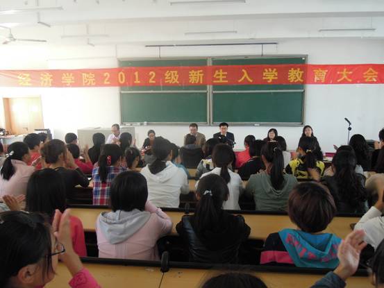 9�28�下午13:30,我院在圣井校区敏行�B5201教室隆重召开2012级新生入学教育大会。我院院长董长瑞、党总支书记吴红文,副院长于淑波、王传荣、杨丽和副处级组织员刘波出席大会。院学工办主任兼团总支书记周新秀、就业办主任兼党�支秘书李冰封、正科级辅导员付雯、学生辅导员�2012级全体新生参加大会。大会由刘�主持�