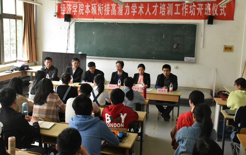 (通讯员:常群�5�9日,经济学院主办�"本硕衔接高潜力学术人才培训工作坊"在舜耕校区教学楼2306教室举行开班仪式。经济学院院长董长瑞、经济研究中心主任朱德云、研究生副院长杨明海、经济学院副院长彭留英、经济研究中心副教授李启航等出席此次开班仪式,开班仪式由彭�英副院长主持。工作坊全体学员参加此次开班仪式�