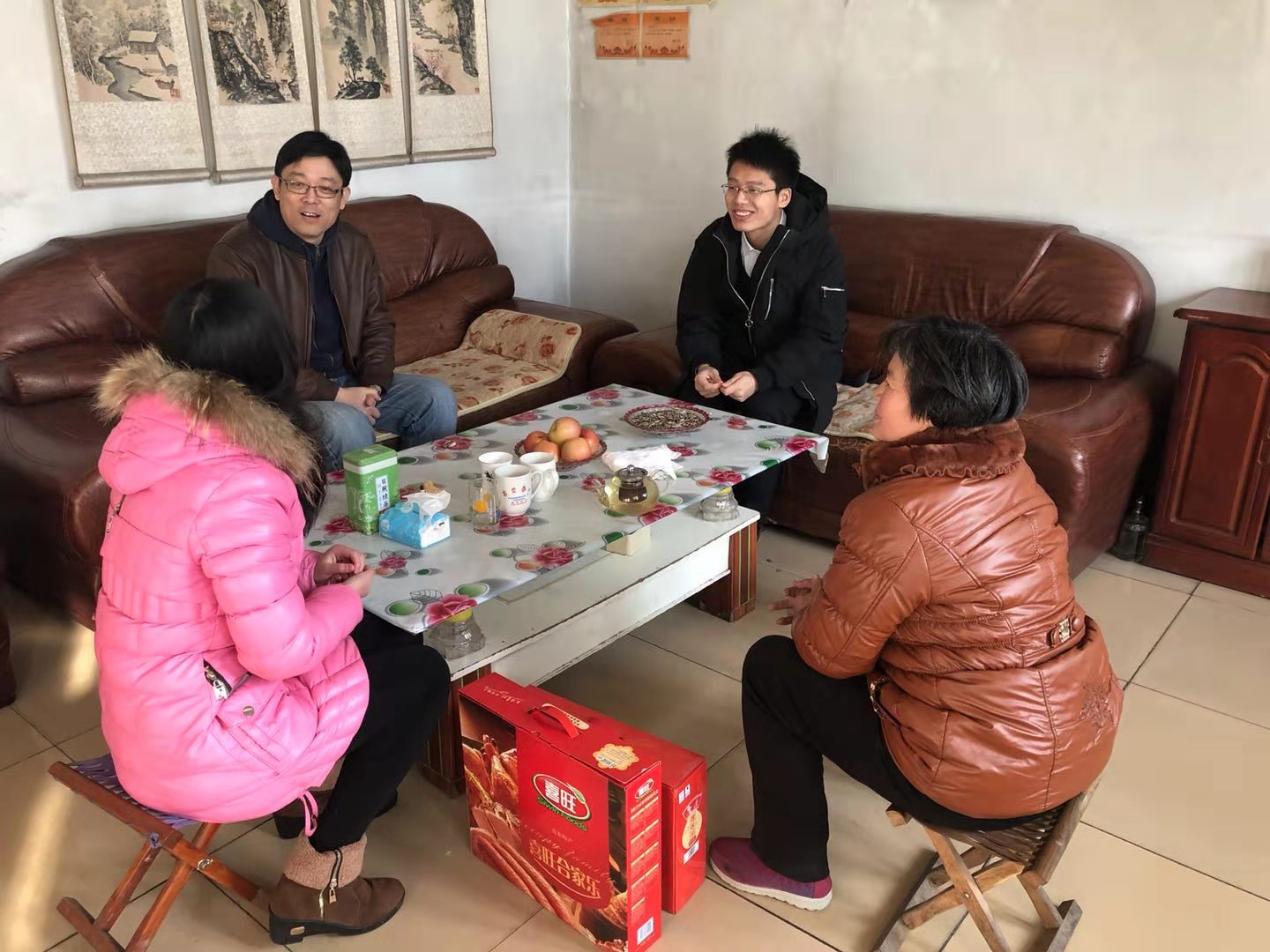 1�11日上午,经济学院就业办主任裴斐、正科级辅导员王琦、辅导员朱海林来到济南市章丘区龙山街道党家镇八村的2018级困难学生刘庆霞家中,与家长沟通了学生入大学半年来的表现,并对该生下一步的学业发展、职业规划给出合理化建议�
