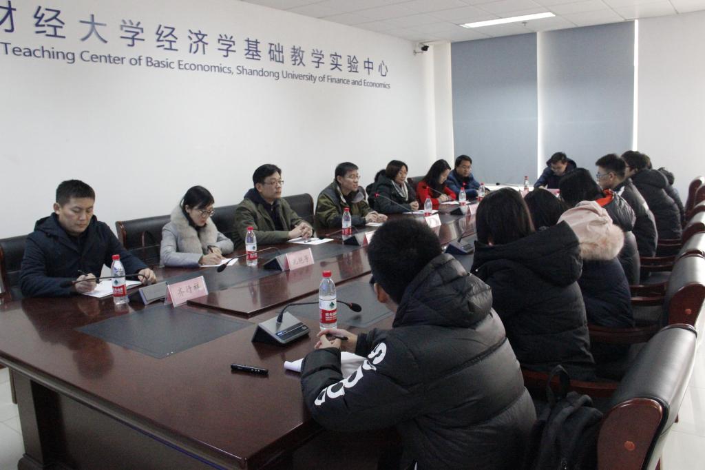 1�10日下午,山东财经大学经济学院人工智能与高质量发展研究所揭牌仪式暨第一次工作会议在舜耕校区经济学基础教学实验中心举行。经学院党委书记姜伟、院长董长瑞出席揭牌仪式。仪式由副院长王传荣主持�