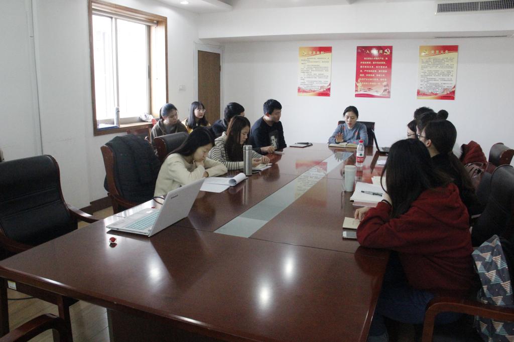 2018�12�17日下午,经济学院研究生出国经验交流会议在舜耕校区行政楼1208举行。江珊和雅琨位同学受邀作报告,部分2018级研究生参加交流会,会议由经济学院留英副院长主持�