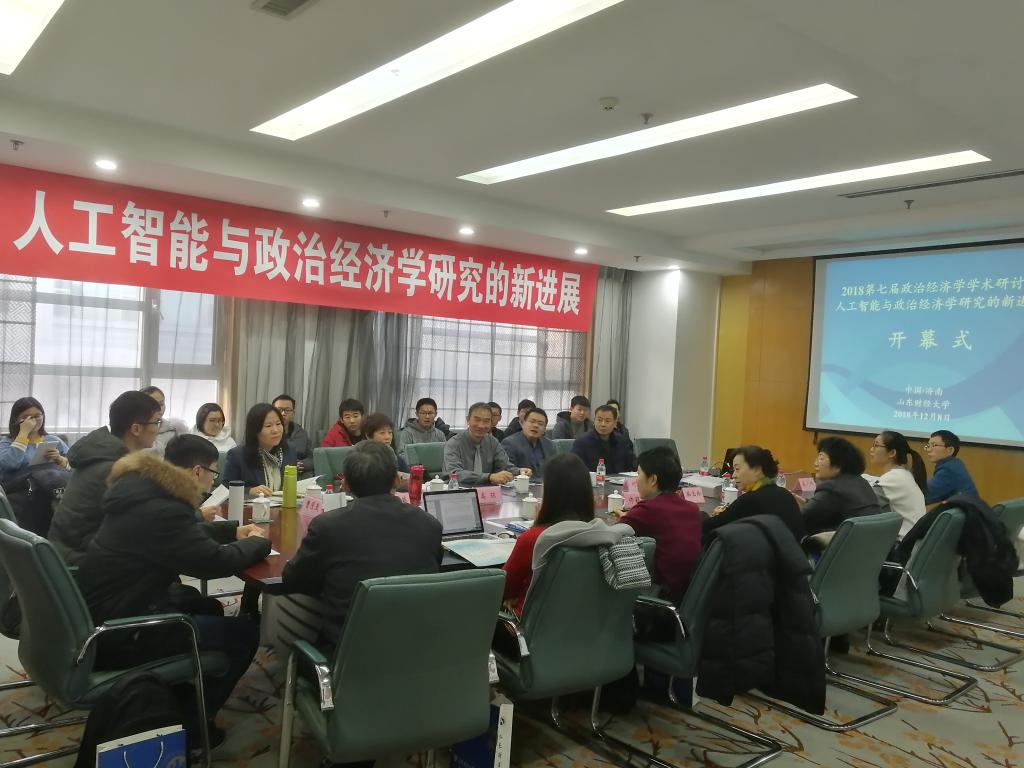 12�8日,第七届山东财经大学政治经济学学术研讨会(2018)在济南天舜大厦成功举办。本次研讨会由山东财经大学主办,山东财经大学经济学院、山东省经济理论与政策研究中心、山东财经大学人工智能与高质量发展研究所承办,《经济与管理评论》、《山东财经大学学报》、《经济理论与政策研究》编辑部协办。本届研讨会以“人工智能与政治经济学研究的新进展”为主题。会�由经济学院仵颖涛副书记致开幕词�