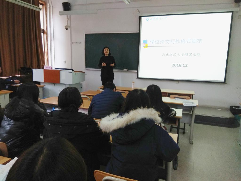 为保证学位论文质量,规范论文格式�12�6日下午,我院2019届毕业生学位论文写作规范培训会在舜耕校区举行。研究生院王丽萍副院长受邀开展培训,拟于2019年毕的博士、硕士研究生和部分其他年级的研究生共�40余人参加了讲座。会议由经济学院彭留英副院长主持�