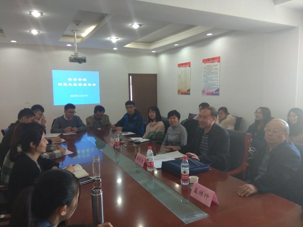 11�19日下午,学院举办研究生教学座谈会。学校教学�导委员会成员、学院教学督导组组长秦宪文教授、学院教学督导组成员孟祥仲教授、臧传琴教授与彭留英副院长、研究生秘书刘应涛和博士研究生、硕士研究生代表�30余人参加了座谈会�