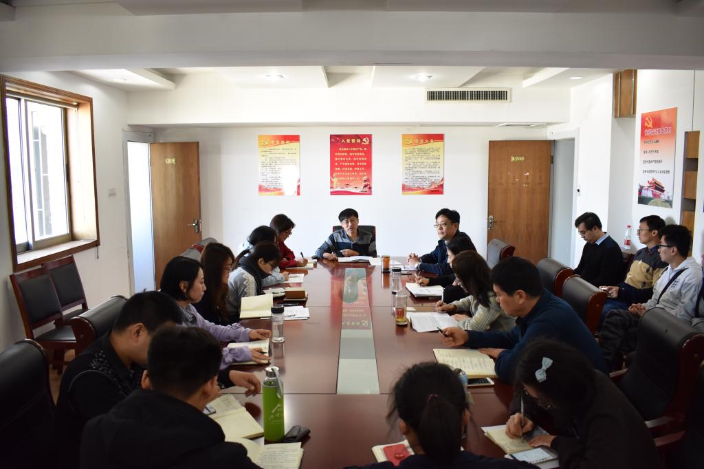 2018�10�18日上�9�30,经济学院党委理论学习中心组在舜耕校区办公楼1208�习贯彻全国教育大会精神。参加学习的还有我院全体行政人员、全体辅导员�2018年新入职�7名教师,会议由党委书记姜伟主持�