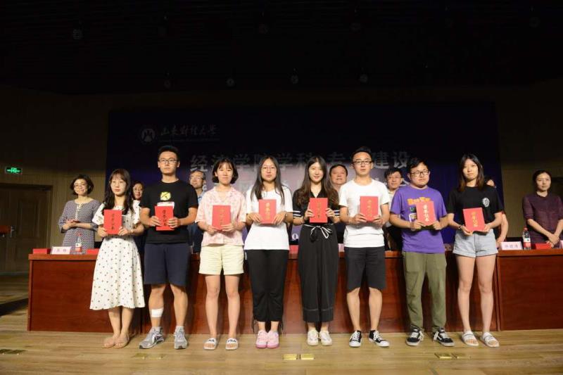 王传荣宣读《关于表彰山东财经大学经济学�2018年度先进个人、先进集体的决定》。高峰宣读《山东财经大学经济学院关于表�2018-2019学年“学业引领标兵”的决定》�