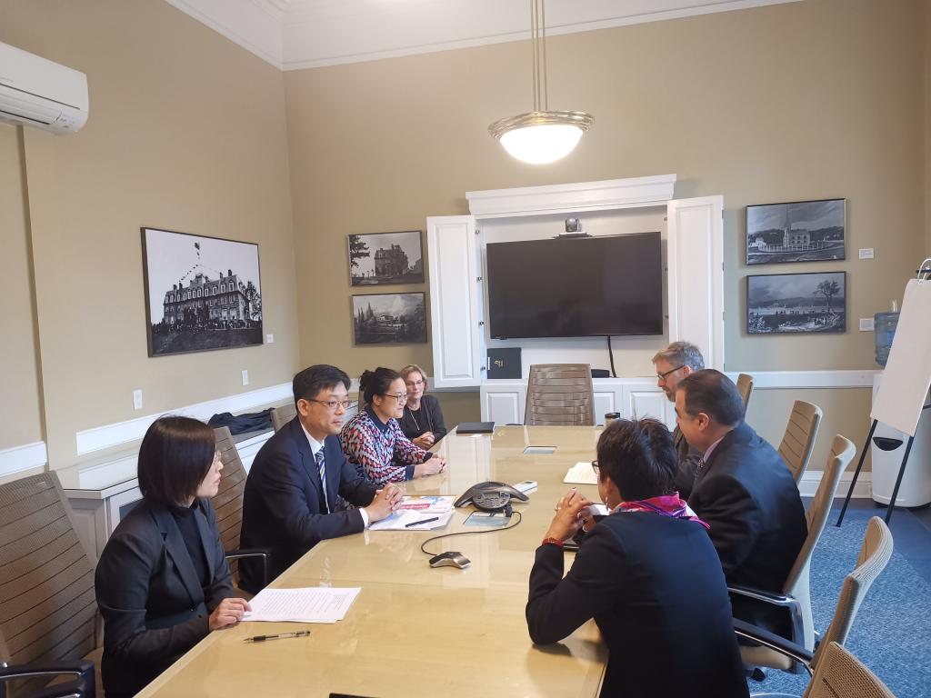 新布伦斯克大学校长Dr. John A. Kershaw、文学院院长Dr. Joanne Wright、经济学院院长Dr. Luc Theriault和继续教育学院院长Ms. Colleen Meagher等领导会见了我院代表,双方进行了友好交流,就深入合作进行了交谈。姜伟书记代表学院发表讲话,高度赞赏了新布伦斯瑞克大学享有的学术声誉以及人才培养、交流合作方面的先进理念,同时介绍了我校近况及国际化需求。山东财经大学和新布伦斯瑞克大学�2013年开始合作以来,在学生培养、教师互访以及学术交流方面取得了骄人的成就,截至今年,我们的合作项目已培�6批共28名硕士毕业生,其中有6人分别到阿尔伯塔大学、卡尔加里大学、曼尼托巴大学等继续攻读博士学位,部分毕业生留在加拿大工作,还有一些回到国内在一些著名跨国公司、企业工作。我们学校也有一些老师通过在新布伦威斯克大学访问,提升了自己的能力,拓宽了眼界。六年的合作,双方都取得了很大的收获,希望将来我们可以在更多更深的领域继续合作�