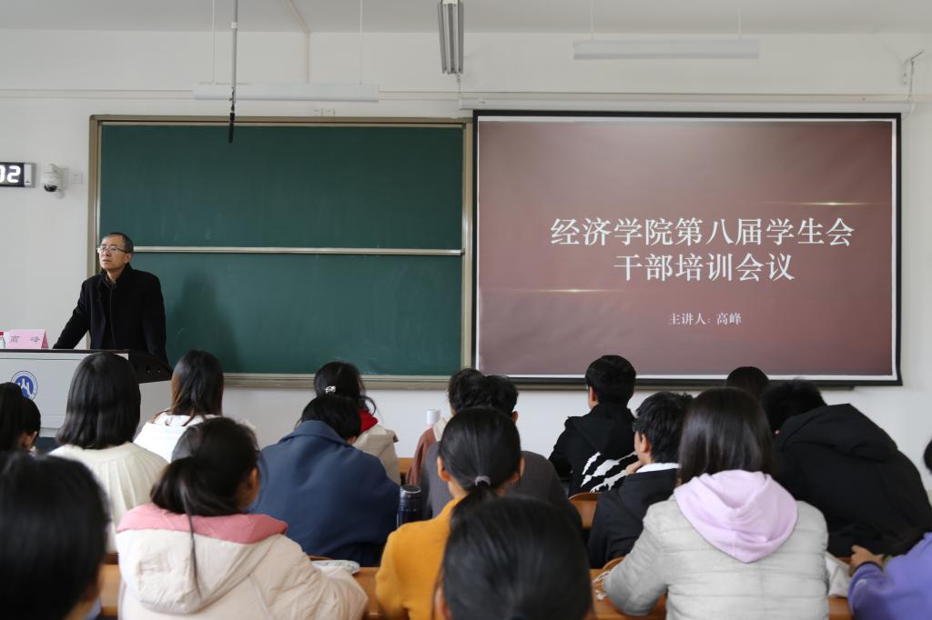 (通讯员:孔繁彬)为帮助我院学生会干部,尤其新加入学生会的干部了解工作要求,明确职责定位,培养提高综合素质和能力,11�22日中�12:30,经济学院于圣井校7号教学楼召开第八届学生会干部培训大会。我院学生会主席团成员,2018级�2019级新入学生会干部参加培训,培训会由院党委副书记高峰主讲�