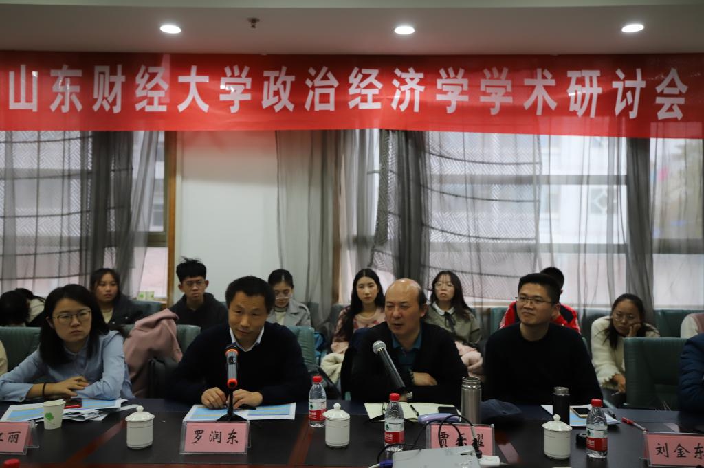 2019�11�24日,由山东财经大学主办,经济学院、山东省经济理论与政策研究中心、人工智能与高质量发展研究所承办,《经济与管理评论》、《山�财经大学学报》、《经济理论与政策研究》编辑部协办的第八届山东财经大学政治经济学学术研讨会顺利召开。来自校内外62名师生和《劳动经济评论》、《山东财经大学学报》、《经济与管理评论》编辑部成员参加会议,学院副院长彭留英副教授主持开幕式,学院院长董长瑞教致开幕词�