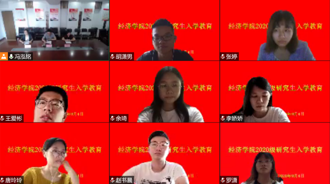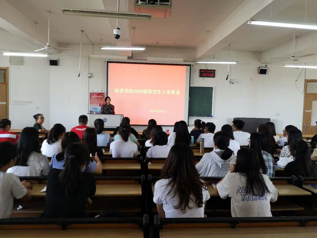 2020�9�4日至6日,经济学院2020级研究生入学教育采用“线�+线下”的方式顺利开展。经济学院党委书记姜伟、院长董长瑞、党委副书记仵颖涛、副院长彭留英、学工办主任周新秀、教师代表白洁担任学教育主讲人�2020级全体研究生参加入学教育。新生入学教育包括党的基本知识教育、疫情防控教育、专业认知教育、生涯规划教育、规则教育、学术诚信教育、校园安全教育、爱国主义教育、爱校荣校教育、心理健康教育十项内容�
