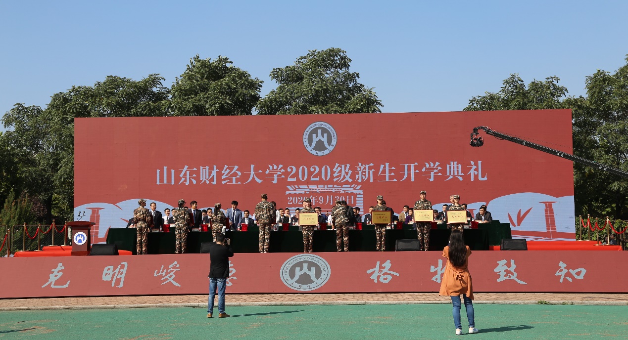 9�30日上午,山东财经大学2020级新生开学典礼在圣井校区田径场隆重举行。军训团政委、校党委学生工作部、学生工作处处长王剑宣读了《关�表彰2020年国防教育先进集体、优秀军训学生、优秀教官的决定》。经济学院被评为军训工作先进单位,付雯被评为国防教育先进工作者,2019级经济学二班王政、刘青源被评为国防教育优秀志愿者,刘博�25名同学被评为优秀军训学生�2020级经济学类二班刘云卿�2020级经济学类三班冯文宣、孟哲、赵莹莹�2020级经济学类五班黄兴,2020级经济学类八班王瑛获得优秀新生入学奖学金,2020级经济学类八班孙逸松获得生源基地优秀新生奖学金�