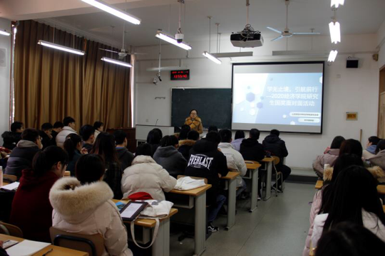 为拓宽我院研究生学术视野,让每一位研究生感受科研工作的魅力,学习和领悟学术科研方法,经济学院研究生会�2020�12�3日下午在3302教室举�“学无止境,引航前行——研究生国奖面对面”专项活动。经济学院党委副书记李冰封、青年教工博士云霄出席本次活动,2020级全体硕士研究生参加本次活动,活动由王鑫主持,王山、刘文斐、吉元梦三位国奖获得者主讲�