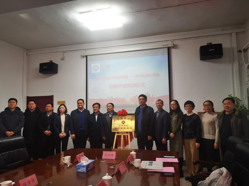 揭牌仪式上,侯传剑对经济学院领导老师的到来表示诚挚欢迎,介绍了圣井街道的产业布局,未来发展等情况,指出与经济学院的合作有着深厚的合作基础,希望双方能发挥各自优势共谋进步,实现长远发展。姜伟介绍了经济学院的发展历史、师资力量、学�建设等情况。对下一步合作,他做了展望:一是要搭建项目化工作台,助推志愿服务活动、推进暑期“三千计划”、助力乡村土地利用专项规划调研、总结乡村振兴齐鲁样板建设经验、壮大新时代文明实践社科普及志愿服务。二是健全校地互动机制,为大学生提供社会实践的良好舞台。希望双方本着优势互补,资源共享,互惠互利,实现双赢的原则,加强协作,共谋发展,建设好、管理好、发展好社会实践基地,进一步拓展校地合作的渠道,积极探索校地联合培养创新型、实用型人才的新模式�