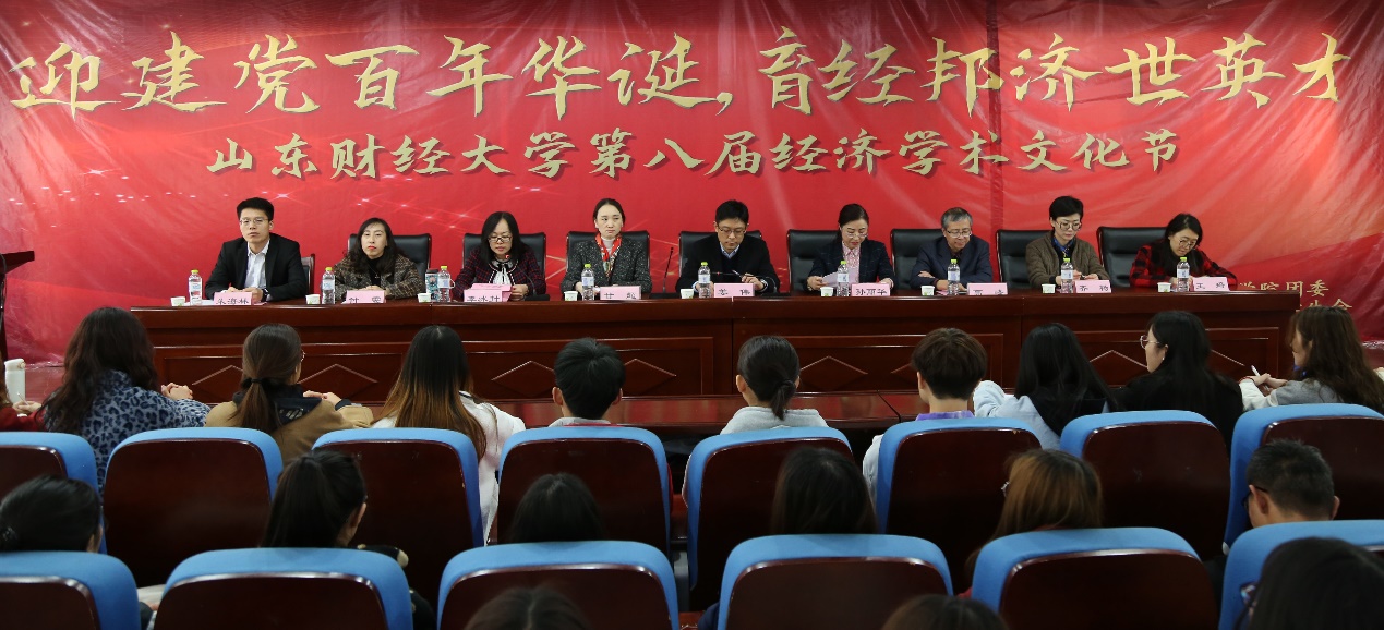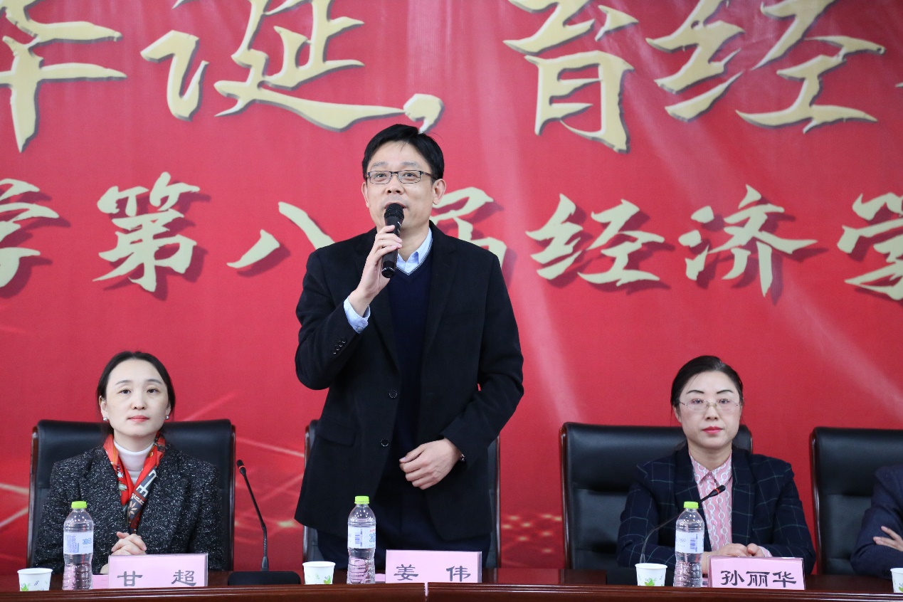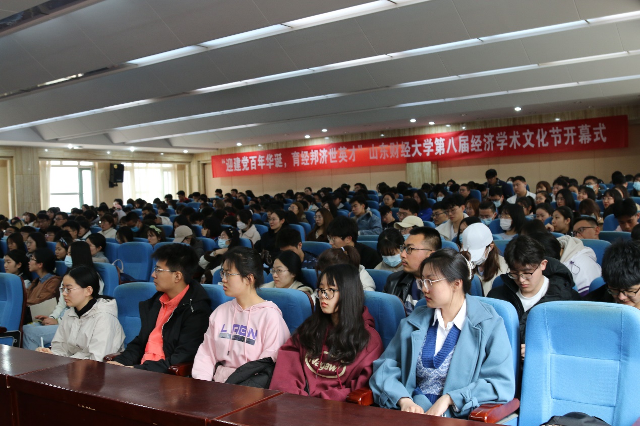 (通讯�:叶雨� 冯源 朱雅�) 3�18日下午,由校学生工作部(处)、校团委和经济学院主办,经济学院团委、学生会承办的山东财经大学“迎建党百年华诞,育经邦济世英才”�八届经济学术文化节开幕式于圣井校区敏行楼报告厅举行。经济学院党委书记姜伟,校学生工作处副处长孙丽华,校团委副书记甘超,经济学院党委副书记高峰、副院长齐杨,党委副书记李冰封,院团委书记付雯,党委专职组织员王琦,就业办主任朱海林出席会议,经济学�2019�2020级学生到场参加。开幕式由李冰封主持�