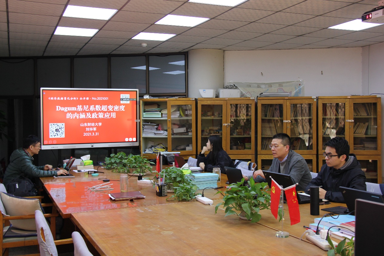 为提升青年教师与研究生量化分析能力,加快培育应用型复合型文科人才,助力新文科教育改革实践,由山东财经大学经济增长与绿色发展科研团队开发的经济数据量化分析全国公开课正式启动�2021�3�31日上午,�1期经济数据量化分析全国公开课成功举办,本次公开课由山东财经大学经济增长与绿色发展科研团队负责人刘华军教授担任主讲,主题为“Dagum基尼系数超变密度的内涵及政策�用”。本次课程以腾讯会议的形式面向广大师生,来自全国的青年教师和研究生近百人参加了此次课程�