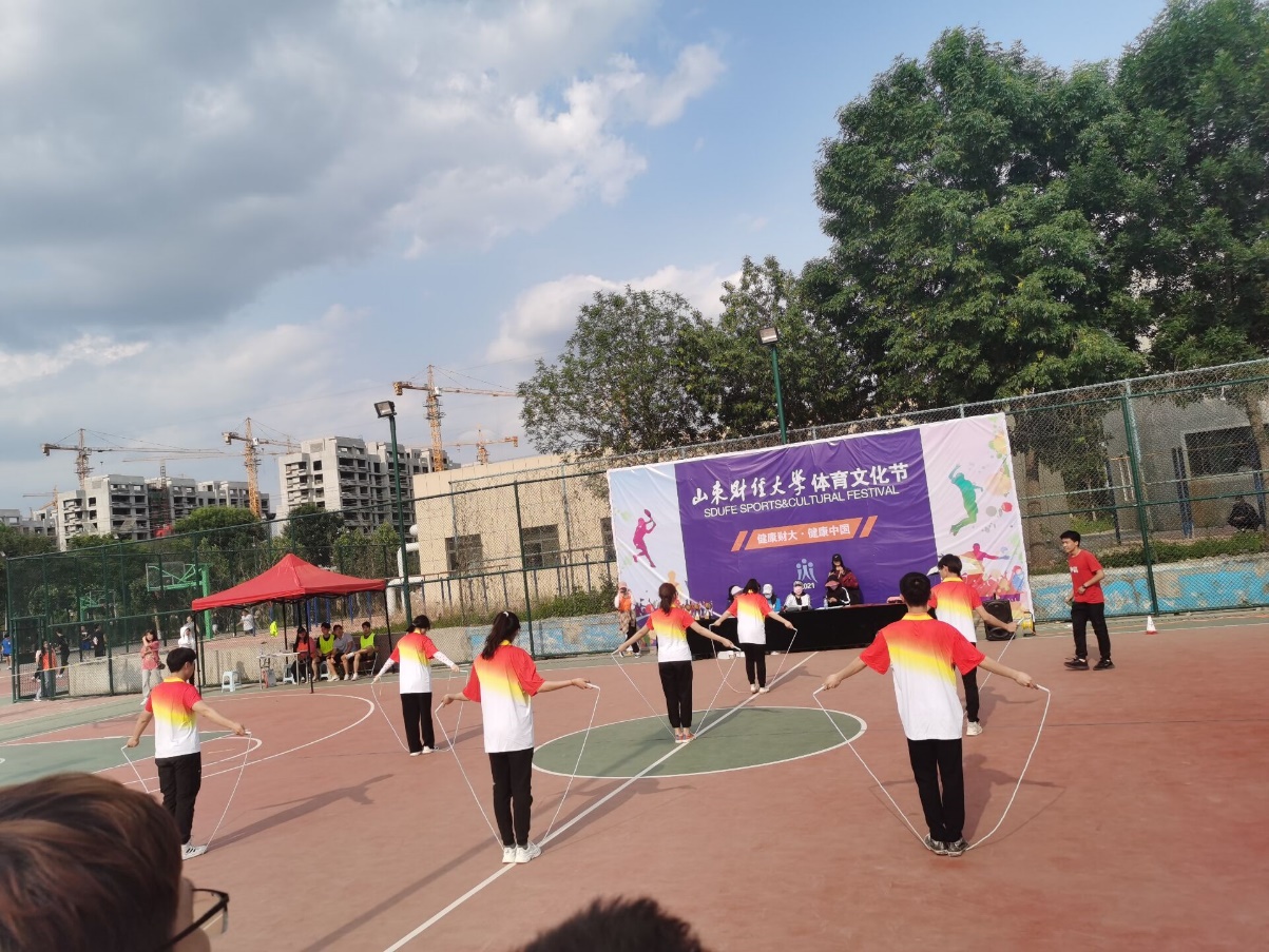 (通讯员:叶雨� 李泉�5�20号下午,山东财经大学体育文化节花样跳绳比赛于圣井校区南篮球场举办。我院参赛选手充分发扬精诚团结、奋勇拼搏的体育精神,先后战胜了国际经济与贸易学陀统计学�等九个学院,荣膺本次花样跳绳比赛冠军�